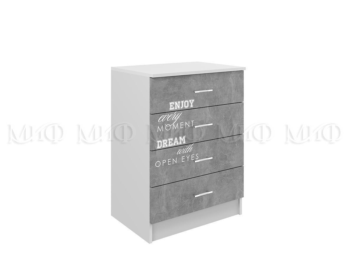 Комод Юниор-2 Лофт МДФ (Ш-600 х В-820 х Г-430 мм)/Белый+Бетон