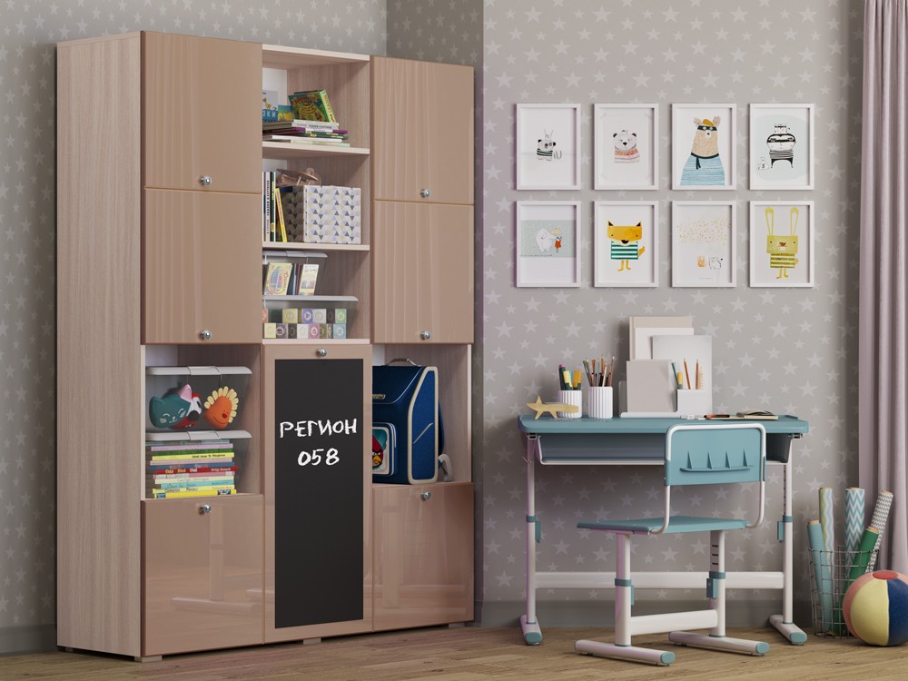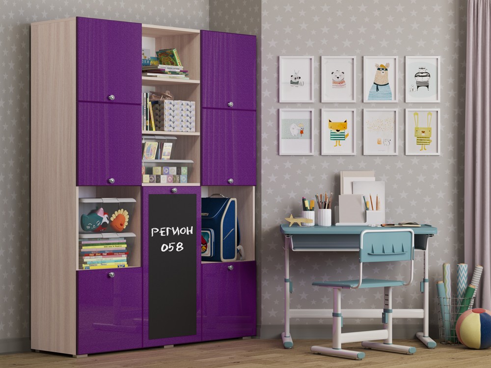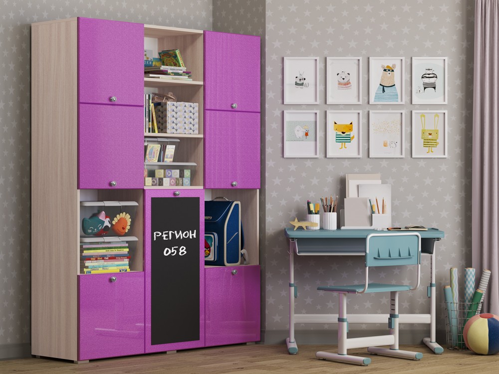 Необычный дизайн, хорошая вместимость шкафа, вешало для детской одежды, завершают образ изящные ручки-кнопки, которые не только красиво смотрятся в интерьере, но и отличаются удобством, долговечностью, безопасностью. Но главной и самой яркой изюминкой шкафа Юнга-11 служит доска для рисования. На ней можно рисовать как мелом, так и специальными маркерами, что позволит Вашему ребенку развивать свое творчество.